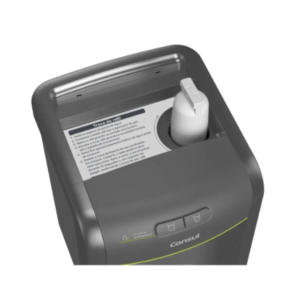 Além disso, o purificador Consul possui uma torneira integrada, facilitando o acesso à água gelada de forma rápida e prática. Com um fluxo máximo de água de 1.5 l/h, você terá água gelada sempre que precisar.